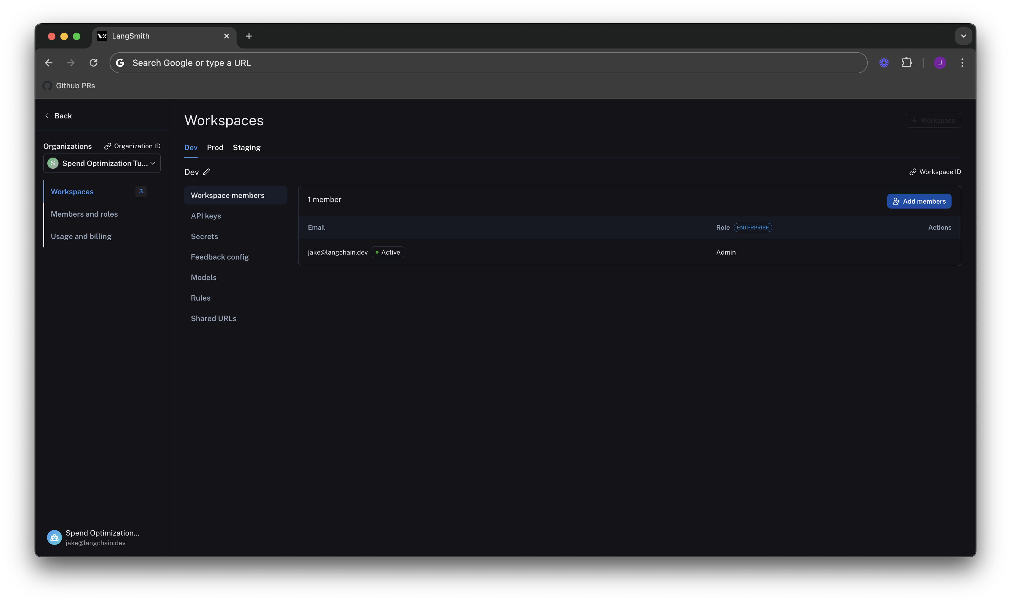 이 사용 패턴에서는 잘 동작하지만, LangSmith에서 dev 및 staging 제한을 잘 설정하는 방법은 사용 사례에 따라 다를 수 있습니다. 예를 들어, dev 또는 staging에서 CI/CD의 일부로 eval을 실행한다면, 테스트 실패를 방지하기 위해 사용량 제한을 더 유연하게 설정할 수 있습니다.