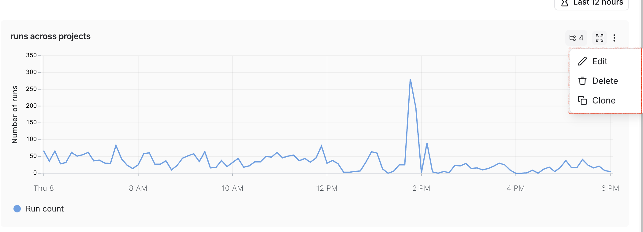 Save를 클릭하여 차트를 대시보드에 저장합니다.- 차트 오른쪽 상단의 세 점 버튼을 클릭하여 차트를 편집하거나 삭제합니다.