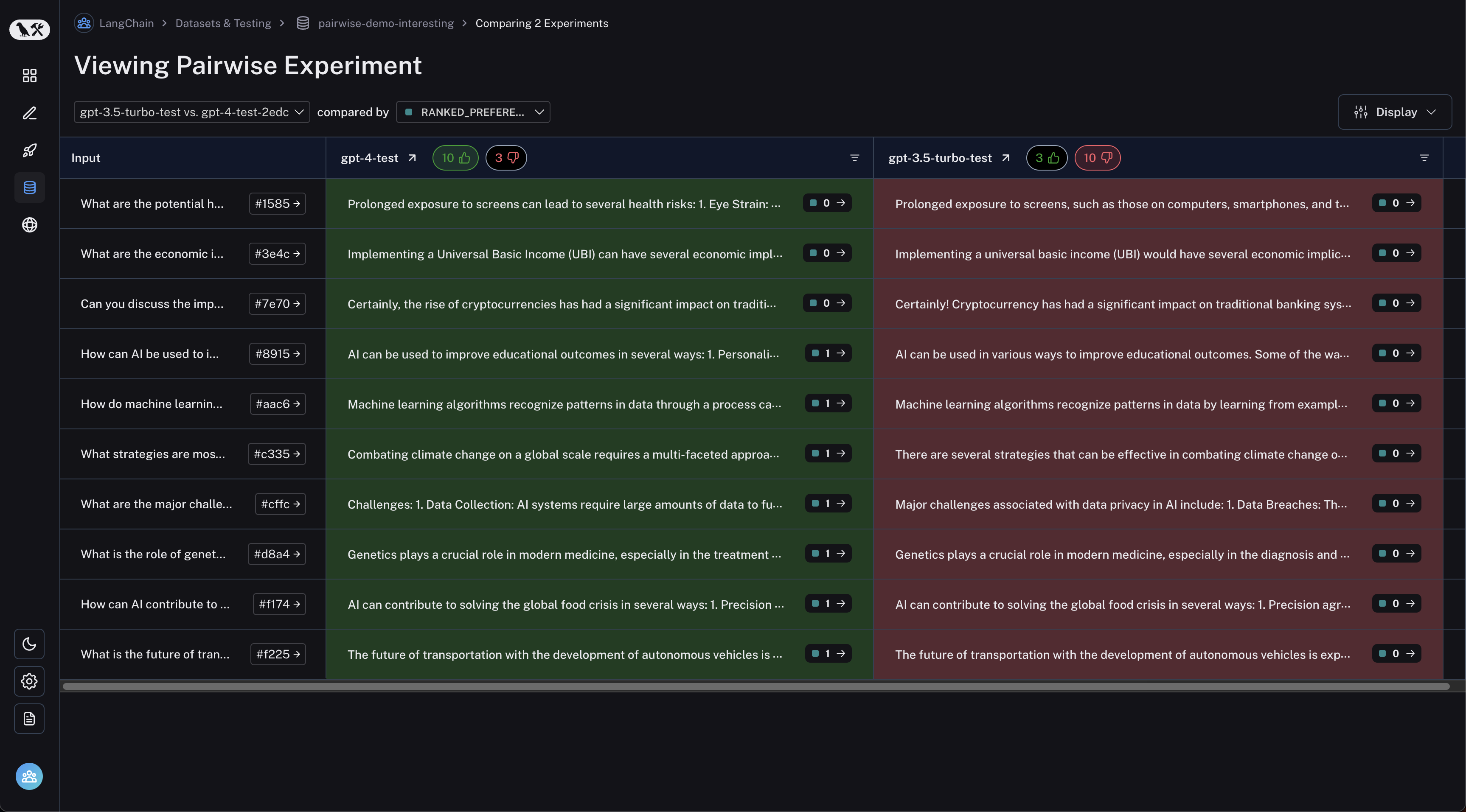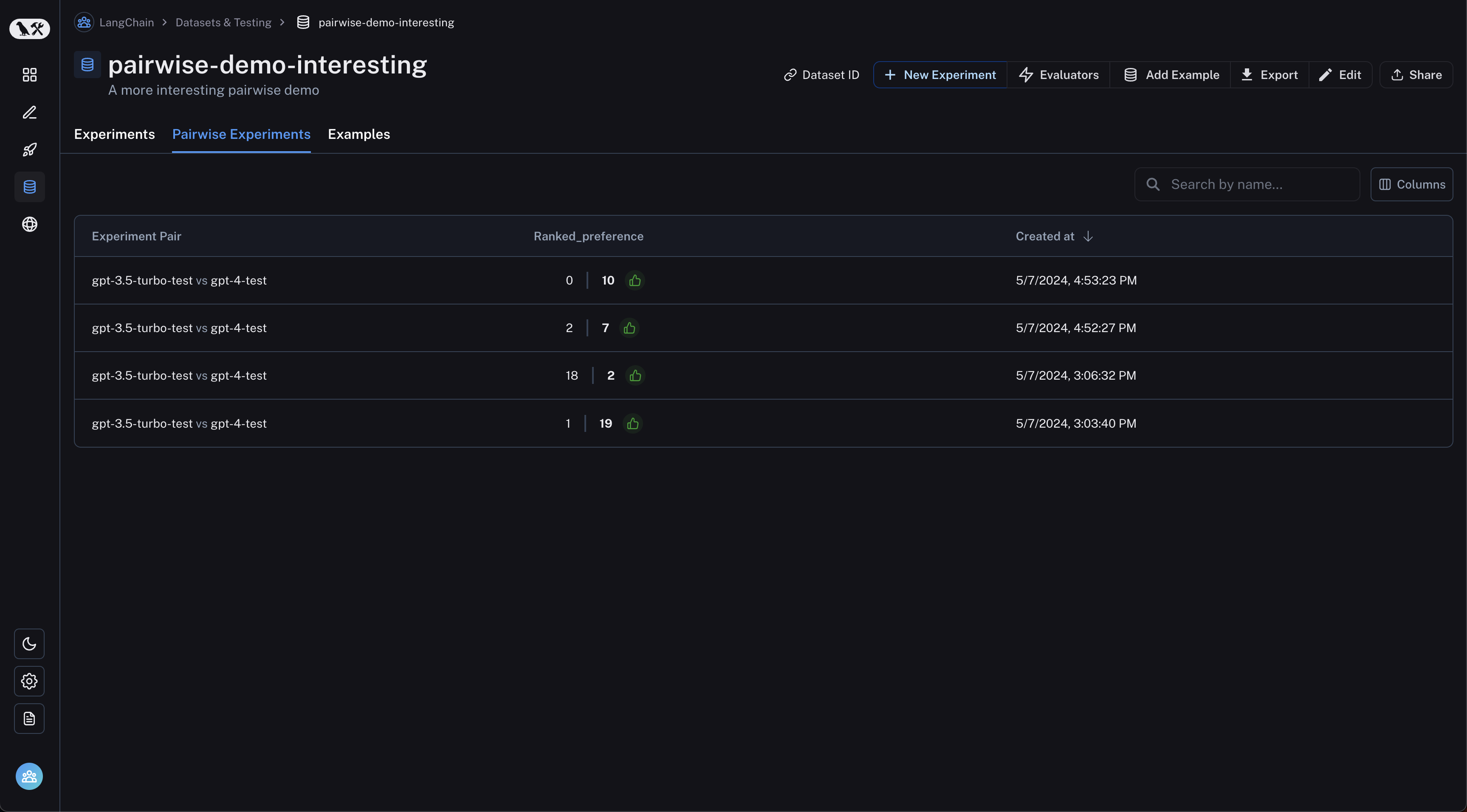 dataset 페이지에서 “Pairwise Experiments” 탭으로 이동합니다: