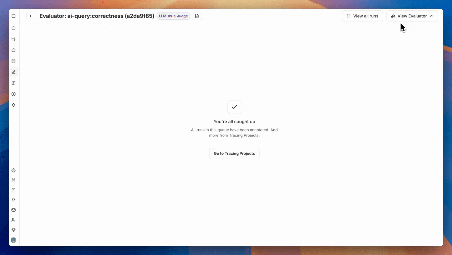 기존 annotation queue에 새 experiment/run을 추가하려면 Evaluators 탭으로 이동하여 정렬 중인 evaluator를 선택하고 Add to Queue를 클릭합니다.