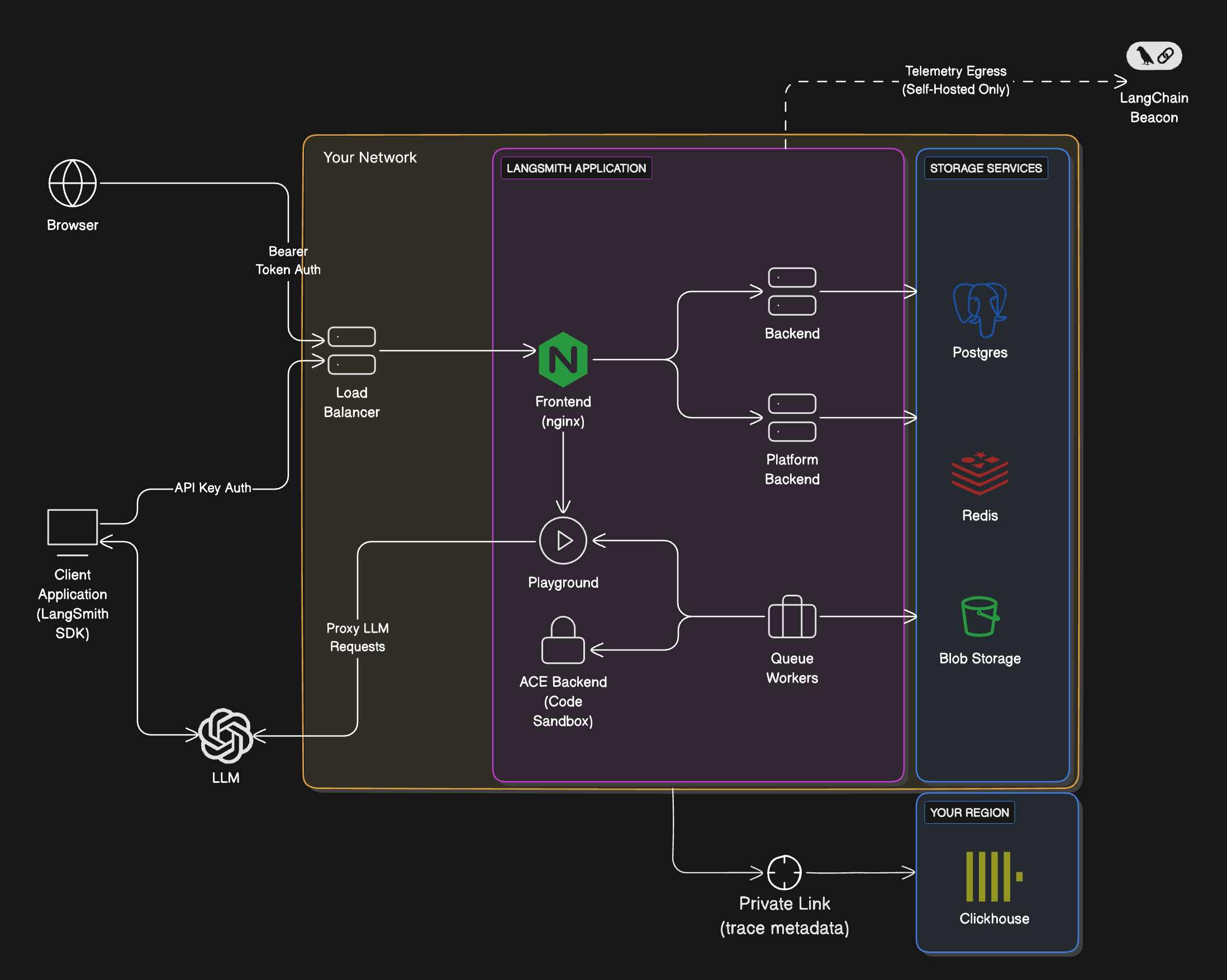 - LangSmith 관리형 ClickHouse 서비스에 연결할 수 있는 VPC가 있어야 합니다. 필요한 네트워킹을 설정하려면 저희 팀과 협력해야 합니다.