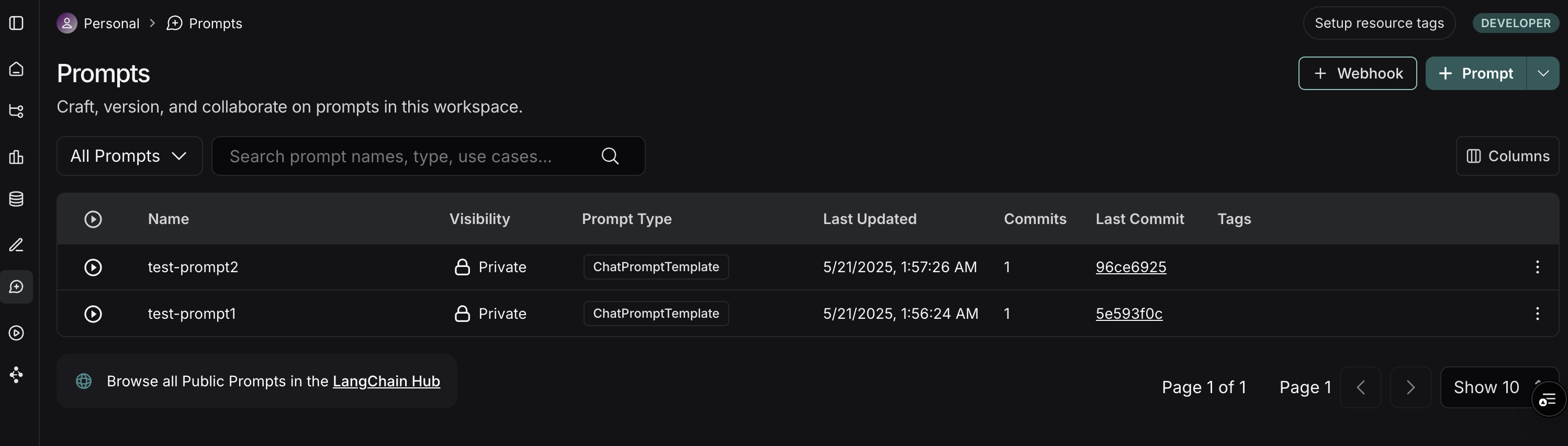 Prompts 섹션으로 이동합니다. 여기에서 prompt 목록을 볼 수 있습니다.