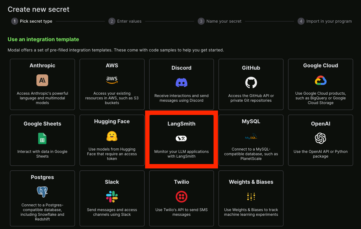 LangSmith secret도 설정할 수 있습니다 - 다행히 이미 통합 템플릿이 있습니다!